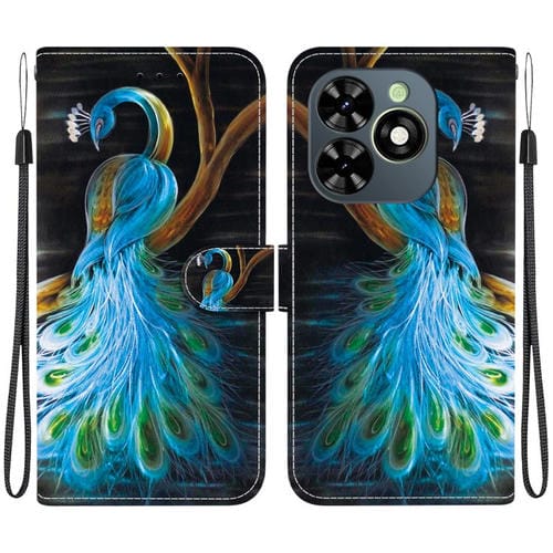 Funda de Cuero para Tecno Spark Go 2024/20C/Pop 8 con Dibujo de Colores y Textura de Cristal (Pavo Real)