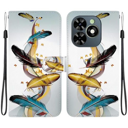 Funda de Cuero con Dibujo de Colores y Textura de Cristal para Tecno Spark Go 2024/20C/Pop 8 (Plumas de Mariposa Doradas)