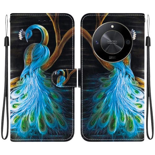 Funda de Cuero Honor X9B Magic6 Lite con Dibujo de Colores y Textura de Cristal (Pavo Real)