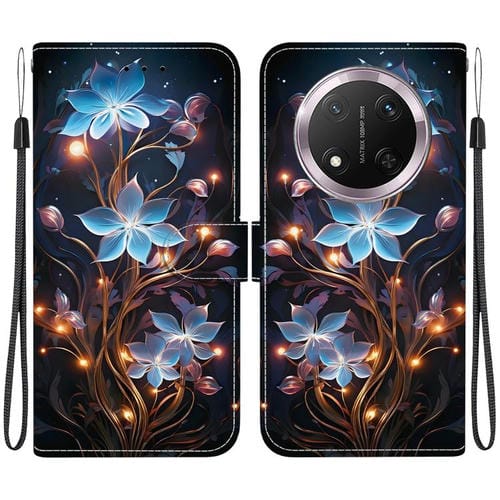 Funda de Cuero Honor X9C con Dibujo de Colores y Textura de Cristal (Flor de Linterna Pequeña)