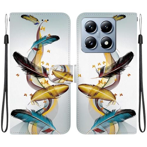 Funda de Cuero con Dibujo de Colores y Textura de Cristal para Xiaomi 14T Pro (Plumas de Mariposa Doradas)