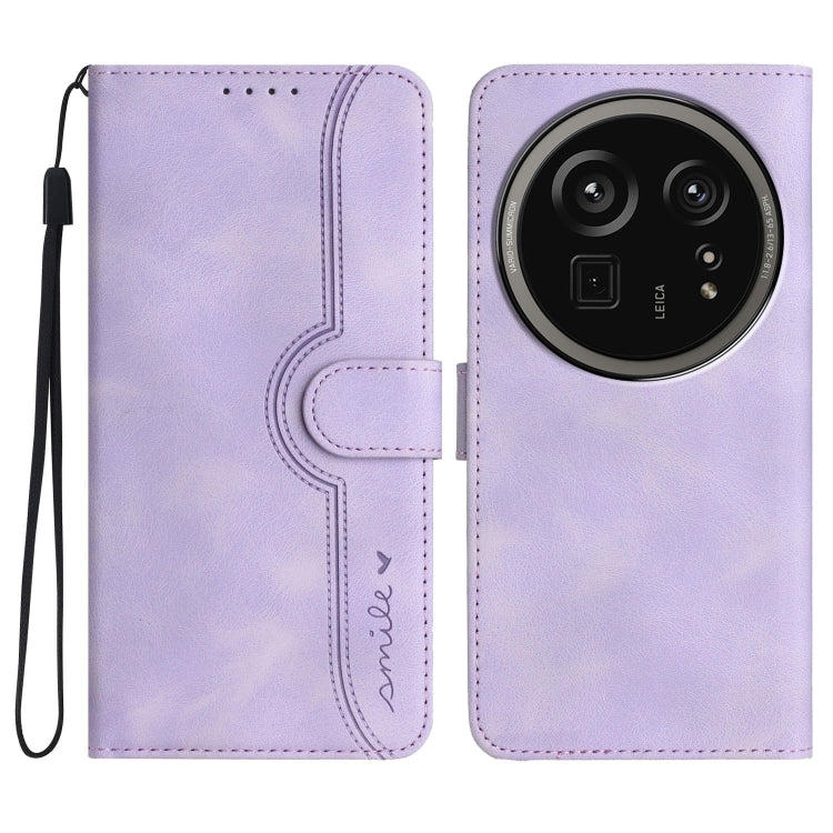 Funda de Cuero para Sharp Aquos R9 Pro con Diseño de Corazón (Morado)
