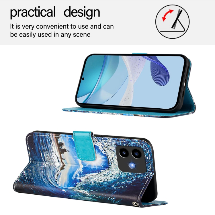 Funda de Cuero para Cubot Note 40 con Diseño Ondas y Sol (Color Liso)