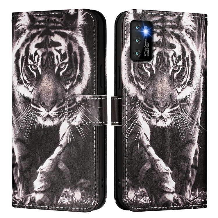 Funda de Cuero para Cubot P50 con Diseño Tigre Blanco y Negro