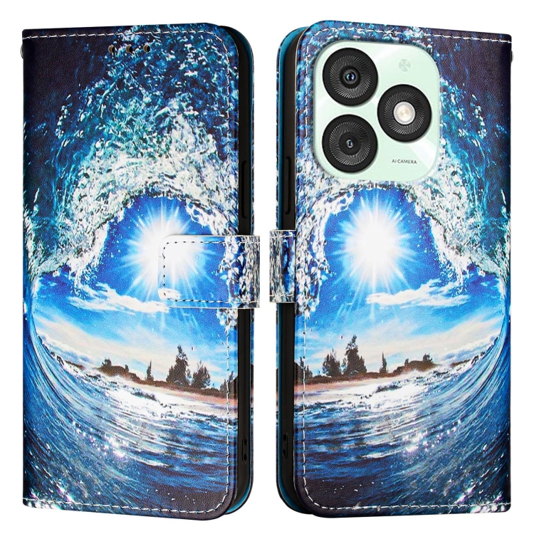 Funda de Cuero Itel A50 con Diseño de Dibujos Ondas y Sol (Color Liso)