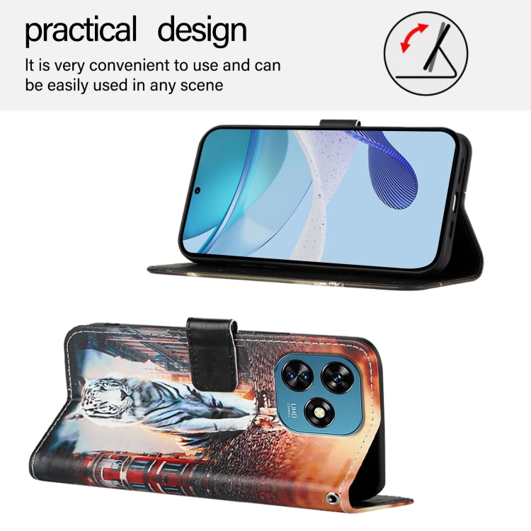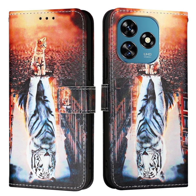 Funda de Cuero para Oukitel C51 con Diseño de Dibujos Gatos y Tigres (Liso)
