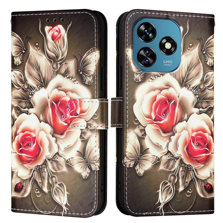Funda de Cuero con Diseño de Dibujos para Teléfono Oukitel C51 (Rosas sobre Negro)