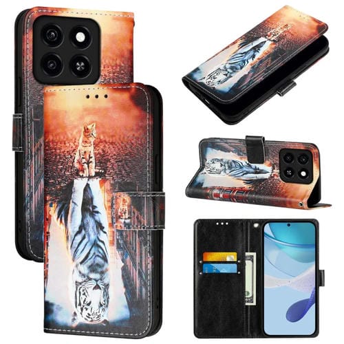 Funda de Cuero para ZTE Blade A35/A55 con Diseño de Gatos y Tigres