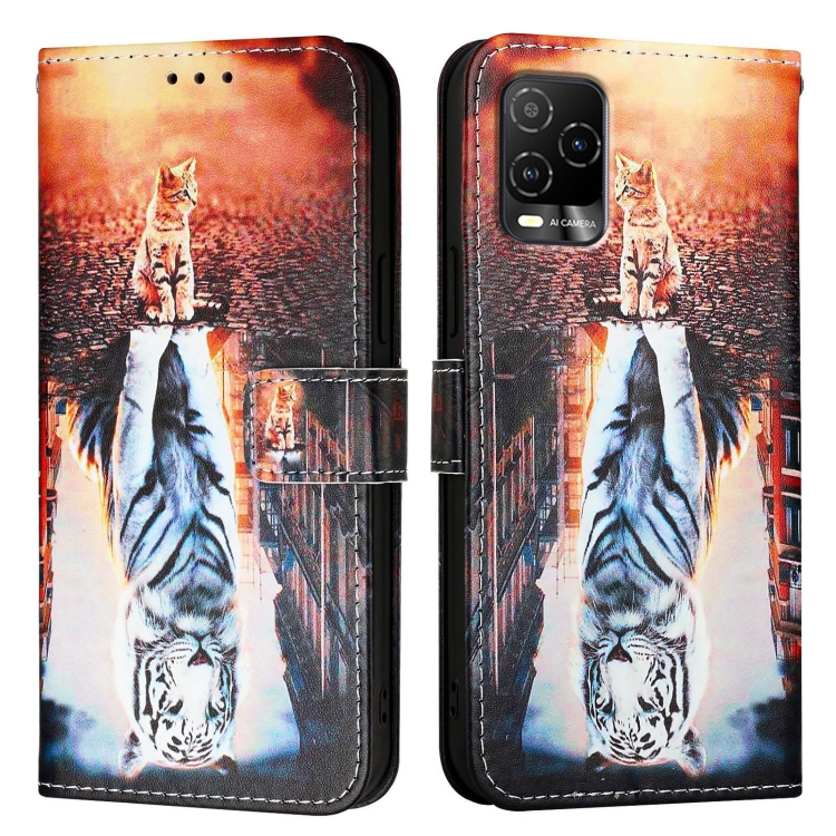 Funda De Cuero Para Blu View 5 Pro Diseño Dibujos Gatos Y Tigres