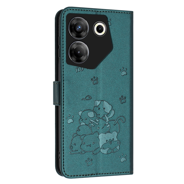 Funda Cuero Tecno Camon 20 Pro 5G Diseño Gatito En Relieve con Cordón (Verde Oscuro)