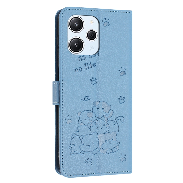 Funda de Piel con Diseño de Gatito En Relieve y Cordón para Xiaomi Poco M6 Pro 5G (Azul)