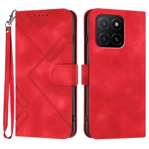 Funda de Cuero Honor X5B y X5B Plus con Diseño de Líneas Globales y Tacto Suave (Rojo)