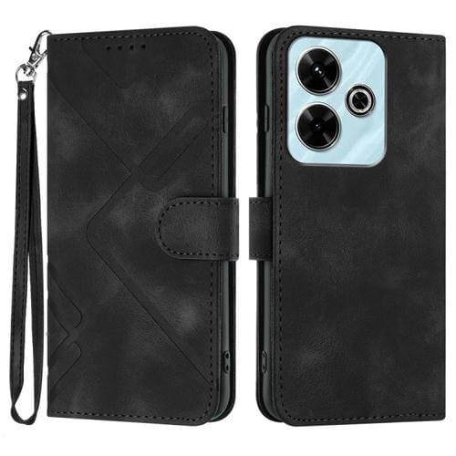 Funda de Cuero con Diseño de Líneas y Tacto de Piel para Redmi 13 4G (Negra)