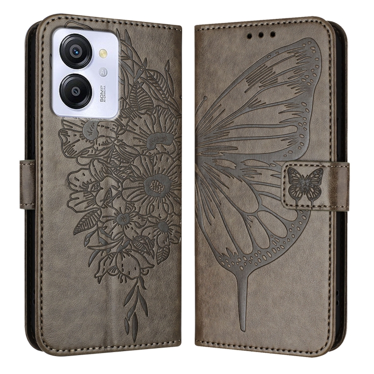 Funda de Cuero BlackView Color 8 con Diseño de Mariposa en Relieve (Gris)