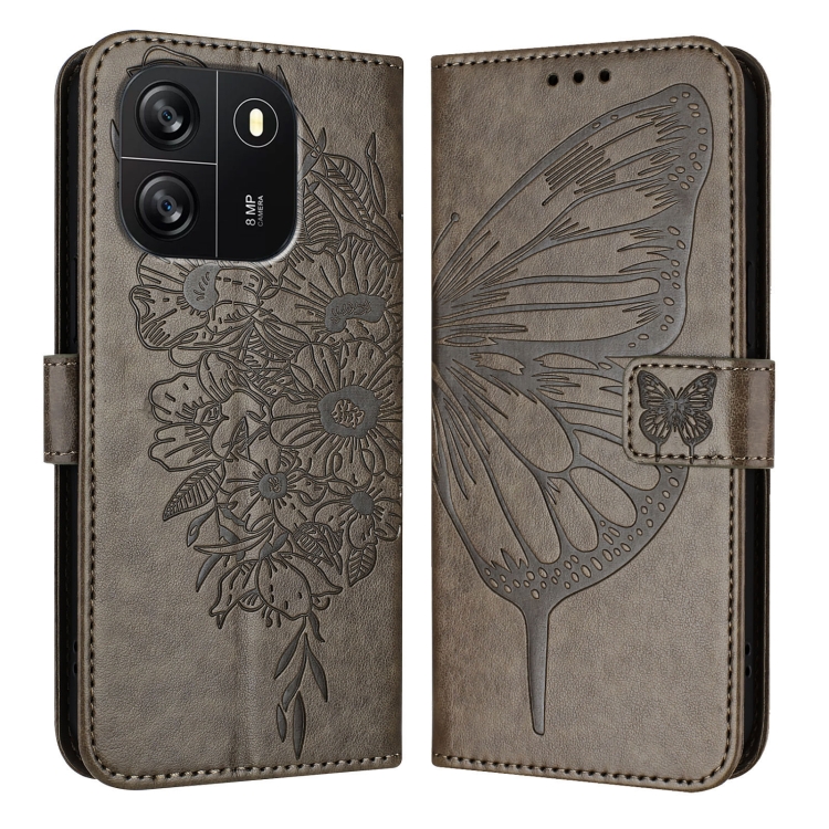 Funda de Cuero BlackView Wave 6C con Mariposa en Relieve (Gris)