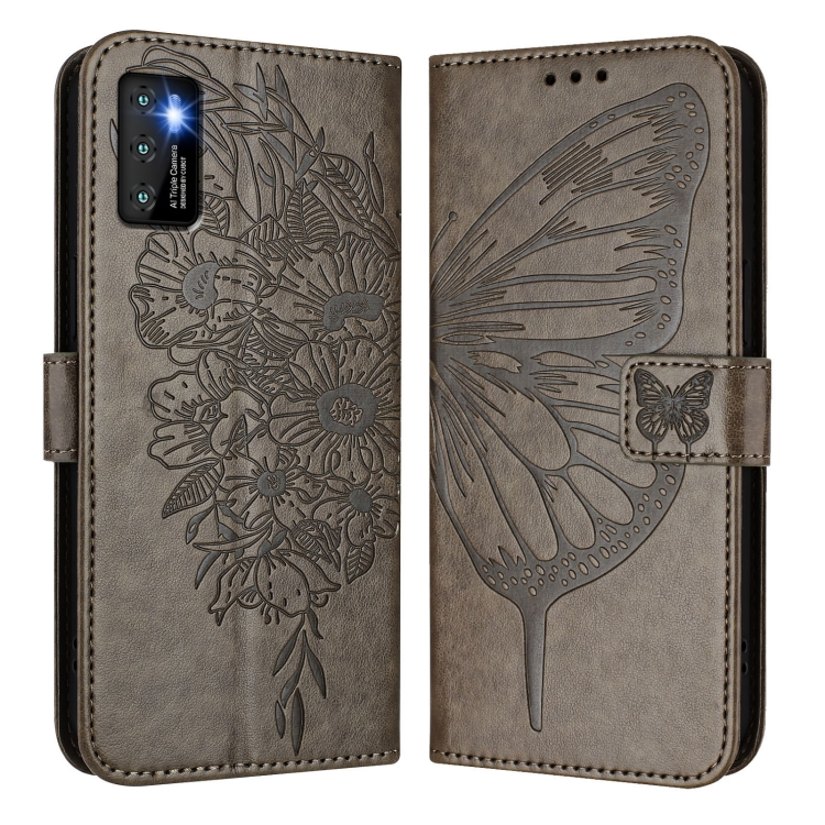 Funda de Cuero Cubot P50 Diseño Mariposa En Relieve (Gris)