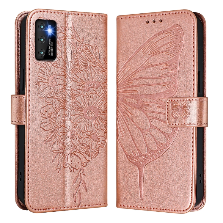 Funda de Cuero Cubot P50 Diseño Mariposa En Relieve (Oro Rosa)