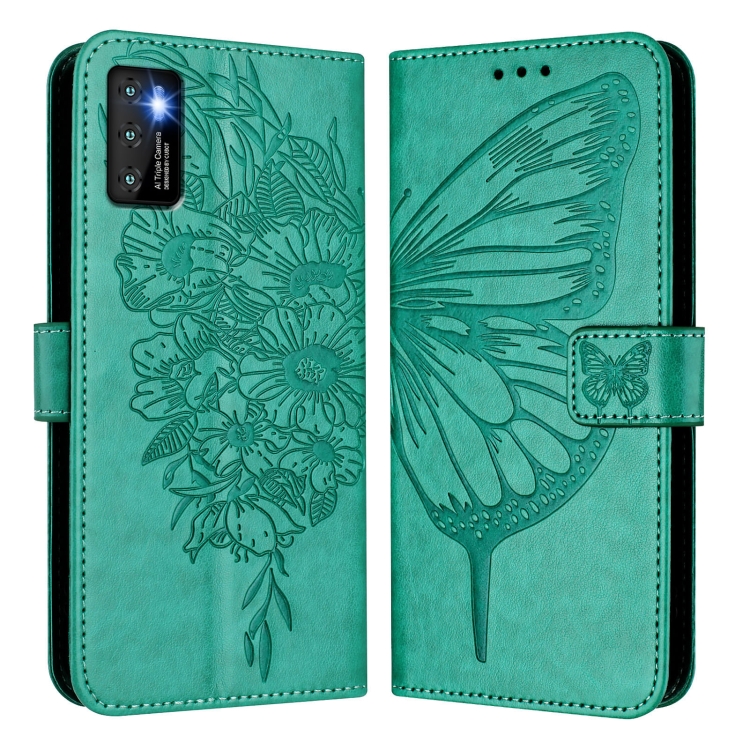 Funda de Cuero para Cubot P50 con Diseño de Mariposa en Relieve (Verde)