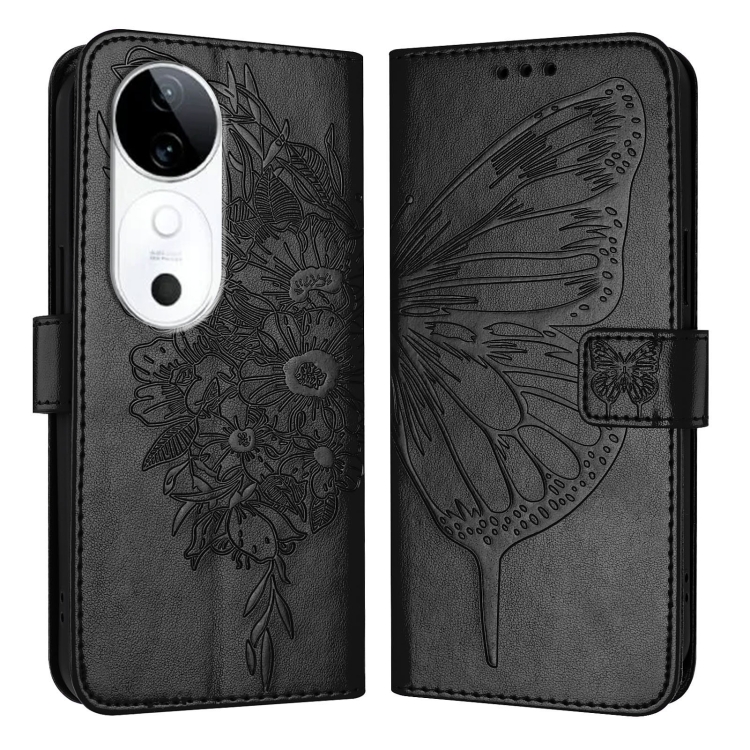 Funda de Cuero con Diseño de Mariposa En Relieve para El Teléfono Vivo S19 (Negro)