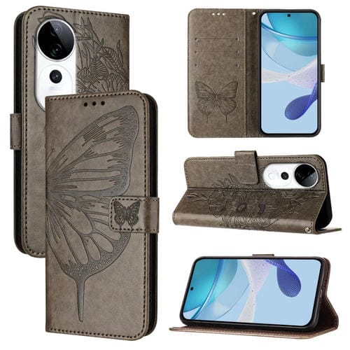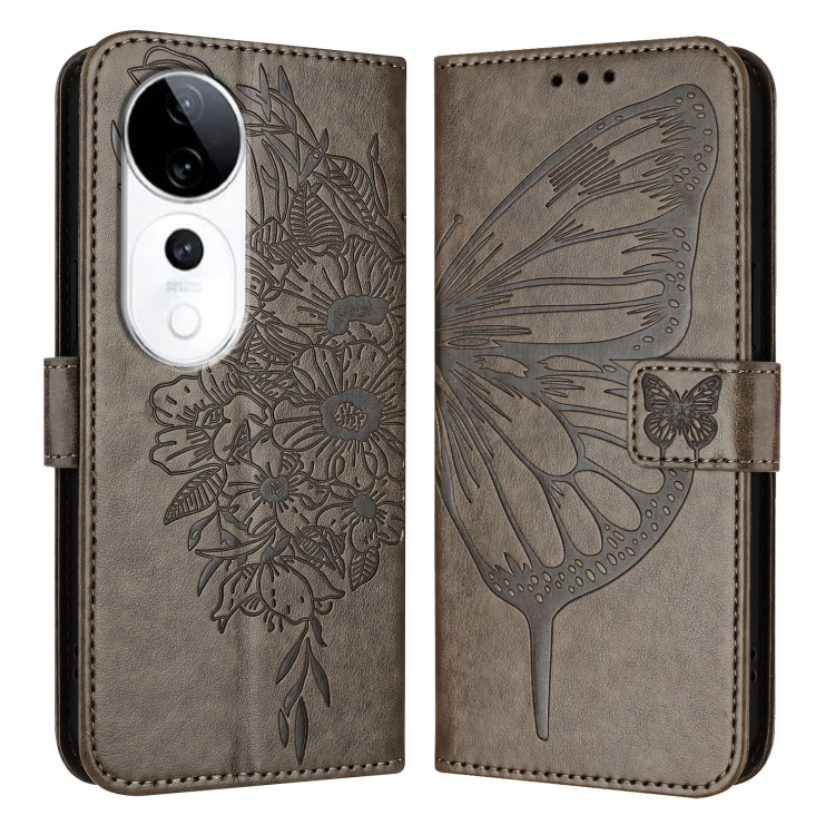 Funda de Cuero con Diseño de Mariposa En Relieve para El Teléfono Vivo S19 Pro (Gris)