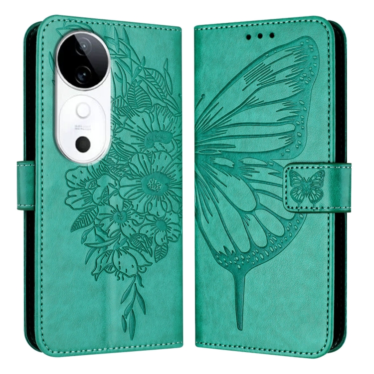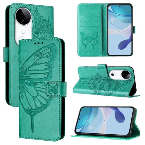 Funda de Cuero con Diseño de Mariposa En Relieve para El Teléfono Vivo S19 (Verde)