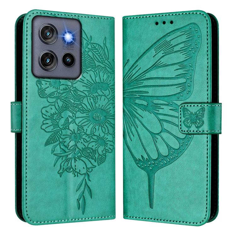 Funda de Cuero Motorola Moto G Stylus 5G (2025) con Diseño de Mariposa en Relieve (Verde)