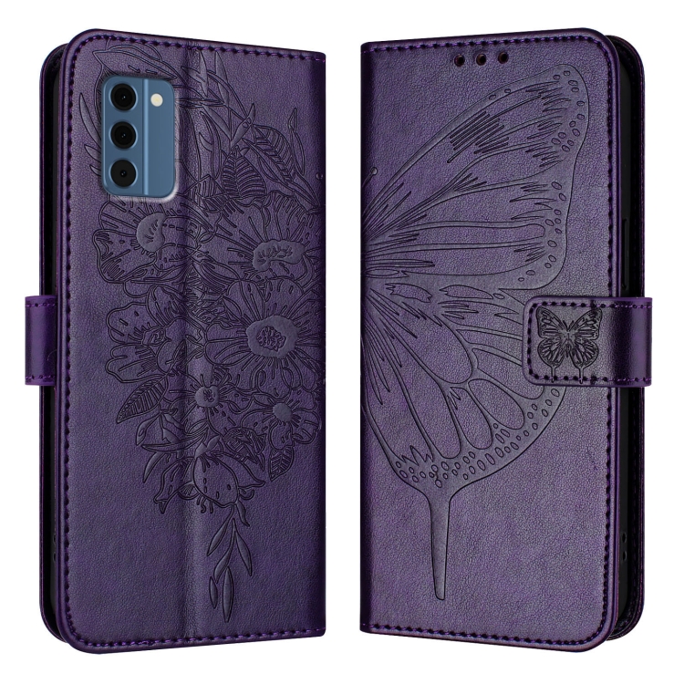 Funda de Cuero para Nokia C300 con Diseño de Mariposa en Relieve (Morado Oscuro)