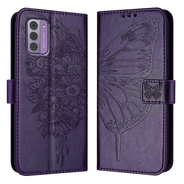 Funda de Cuero con Diseño de Mariposa En Relieve para Nokia G42/G310 (Morado Oscuro)