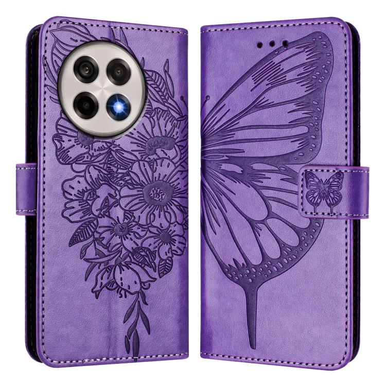 Funda de Cuero con Diseño de Mariposa en Relieve para OnePlus Ace 5 Pro/Ace 5 (Morado Claro)