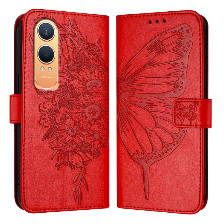 Funda de Cuero con Diseño de Mariposa En Relieve para OnePlus Nord CE4 Lite (Rojo)
