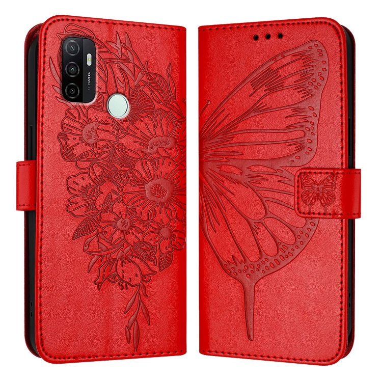 Funda de Cuero con Diseño de Mariposa En Relieve para Oppo A11S 4G (Roja)