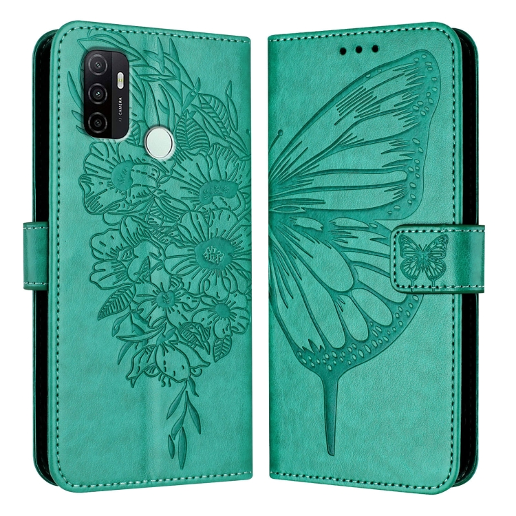 Funda de Cuero con Diseño de Mariposa En Relieve para Oppo A32 2020 4G/A53 2020 4G (Verde)