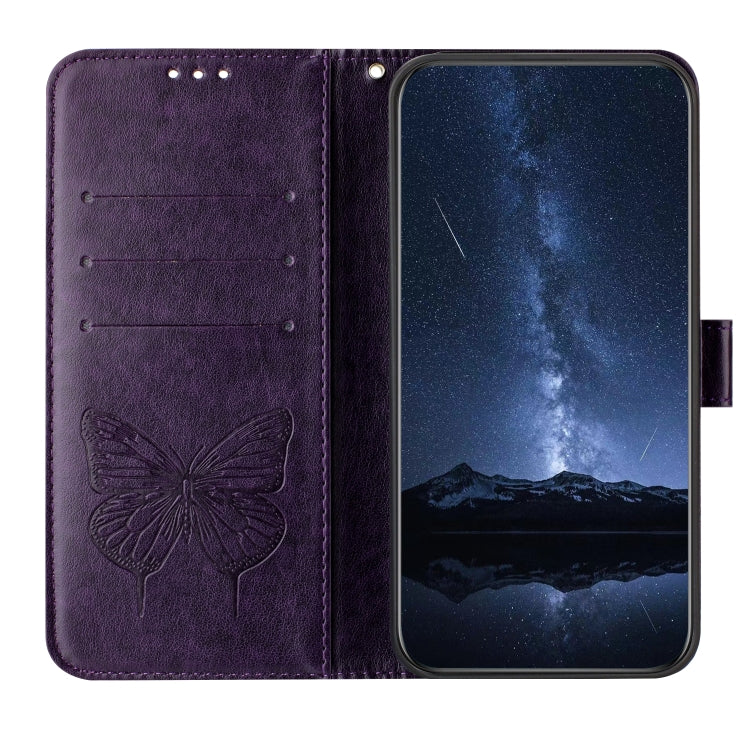 Funda de Cuero para Sharp Aquos Sense9 Plus con Diseño de Mariposa En Relieve (Morado Oscuro)