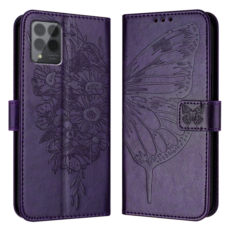 Funda de Cuero para T-Mobile Revvl 6 Pro/6X Pro con Diseño de Mariposa en Relieve (Morado Oscuro)