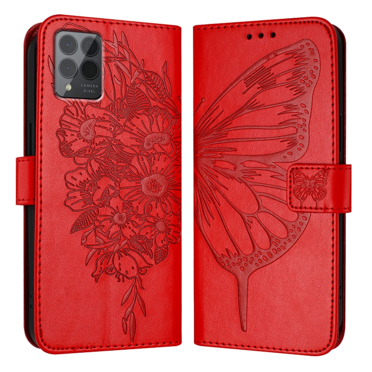 Funda de Cuero para T-Mobile Revvl 6 Pro/6X Pro con Diseño de Mariposa En Relieve (Rojo)