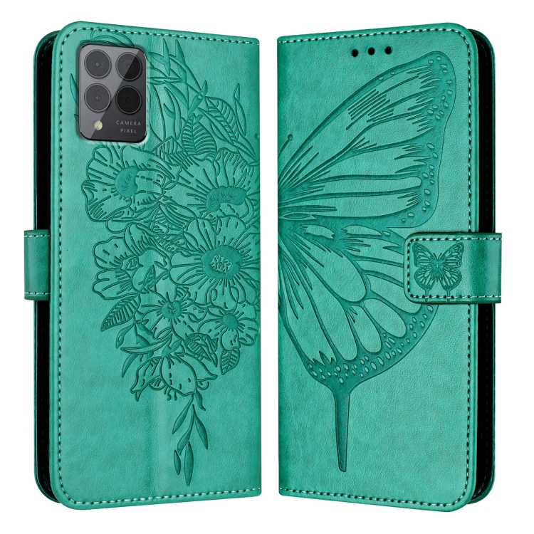 Funda de Cuero para T-Mobile Revvl 6 Pro/6X Pro con Diseño de Mariposa en Relieve (Verde)