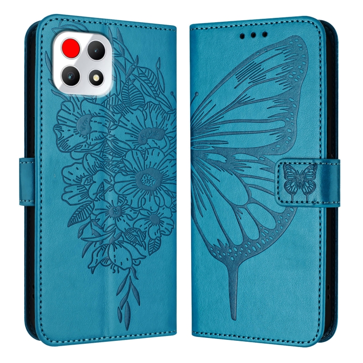 Funda de Cuero para T-Mobile Revvl 7 5G con Diseño de Mariposa En Relieve (Azul)
