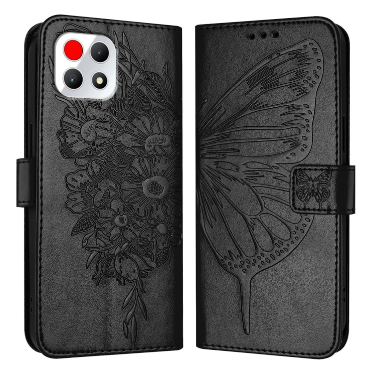 Funda de Cuero para T-Mobile Revvl 7 5G con Diseño de Mariposa En Relieve (Negra)