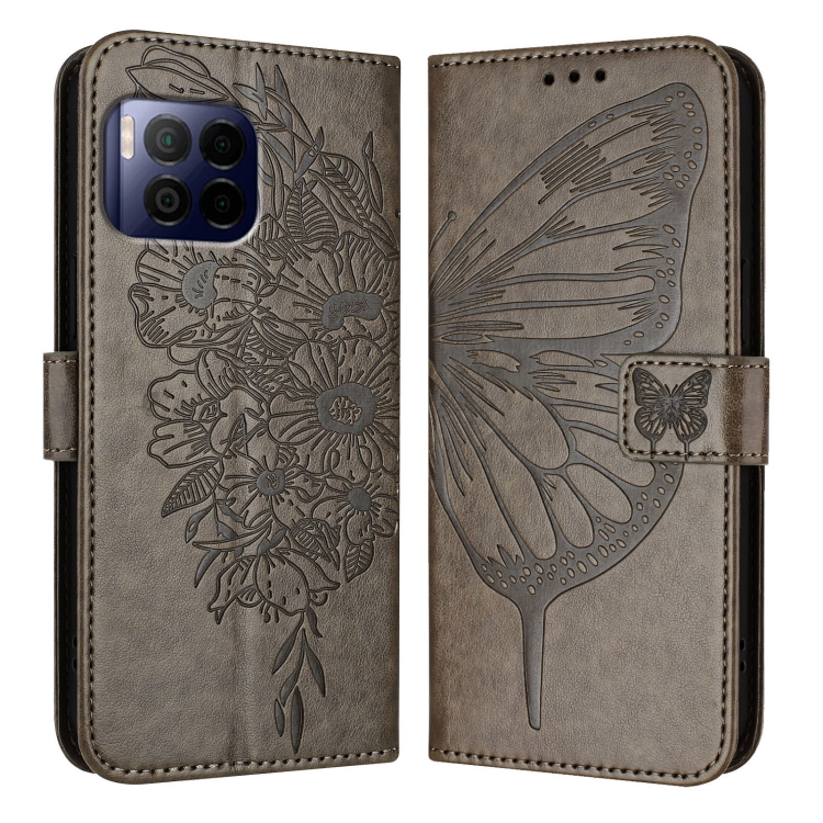 Funda de Cuero para T-Mobile Revvl 7 Pro 5G con Mariposa en Relieve (Gris)