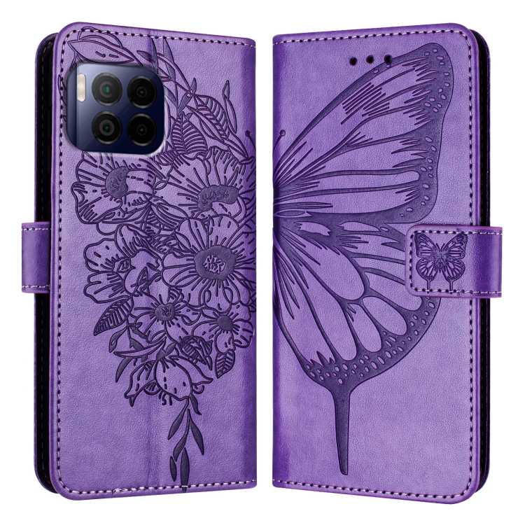Funda de Cuero para T-Mobile Revvl 7 Pro 5G con Diseño de Mariposa En Relieve (Morado Claro)