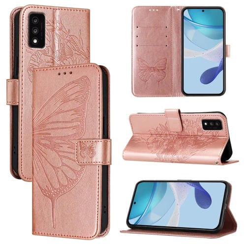 Funda de Cuero para TCL 30T T603Dl con Diseño de Mariposa En Relieve (Oro Rosa)