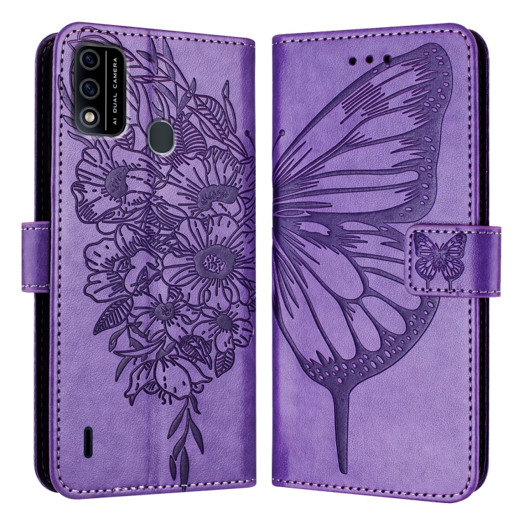Funda de Cuero para Itel A48 con Diseño de Mariposa en Relieve (Morado Claro)