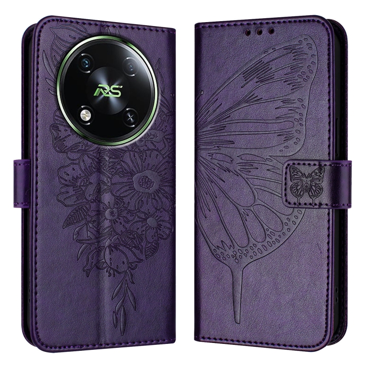 Funda de Cuero Itel Rs4 S666Ln con Diseño de Mariposa en Relieve (Morado Oscuro)