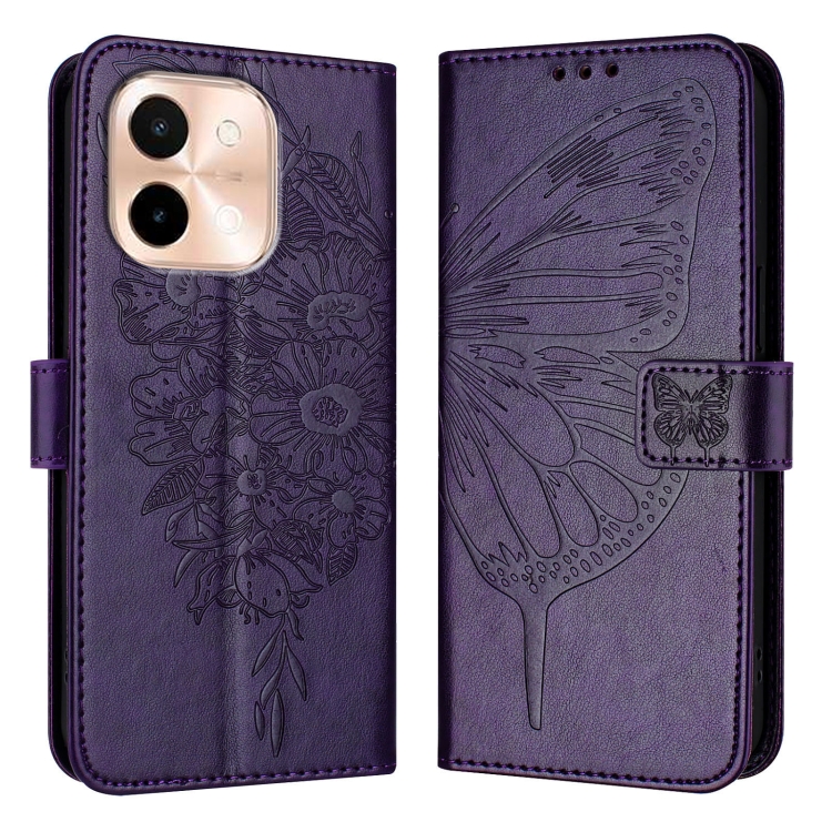 Funda de Cuero con Diseño de Mariposa En Relieve para Vivo Y28 4G (Morado Oscuro)