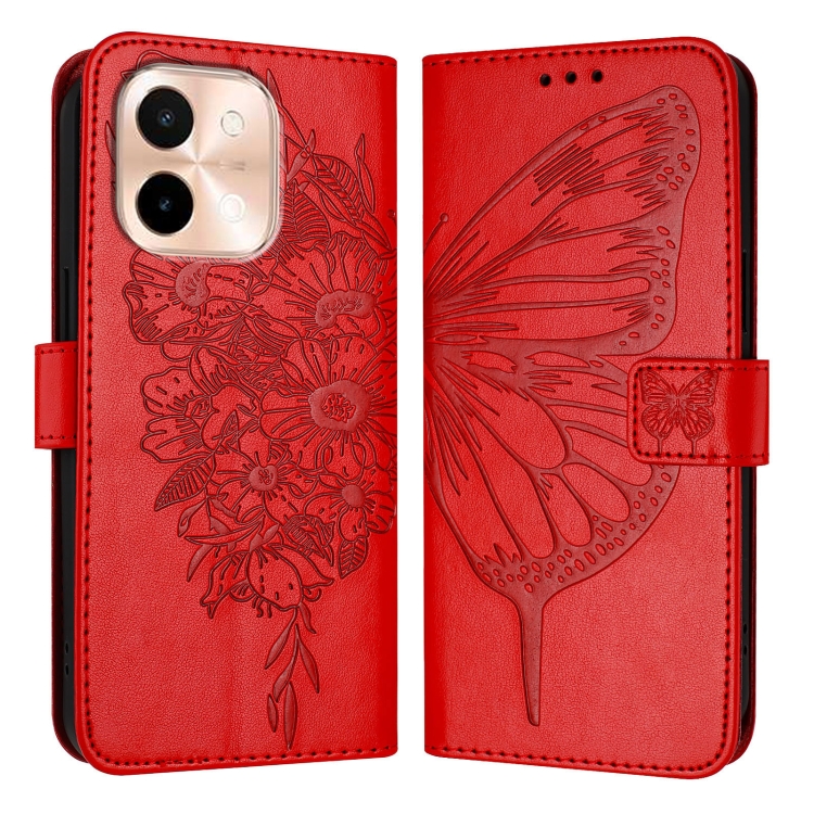 Funda de Cuero con Diseño de Mariposa En Relieve para Vivo Y28 4G (Rojo)