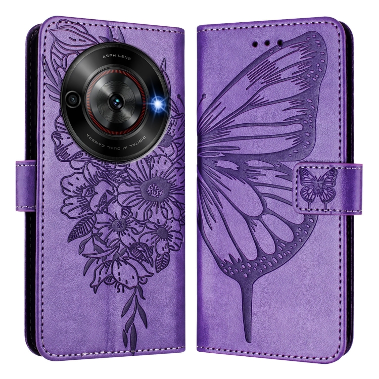 Funda de Cuero para ZTE Blade A75 5G Nubia Focus con Diseño Mariposa En Relieve (Morado)
