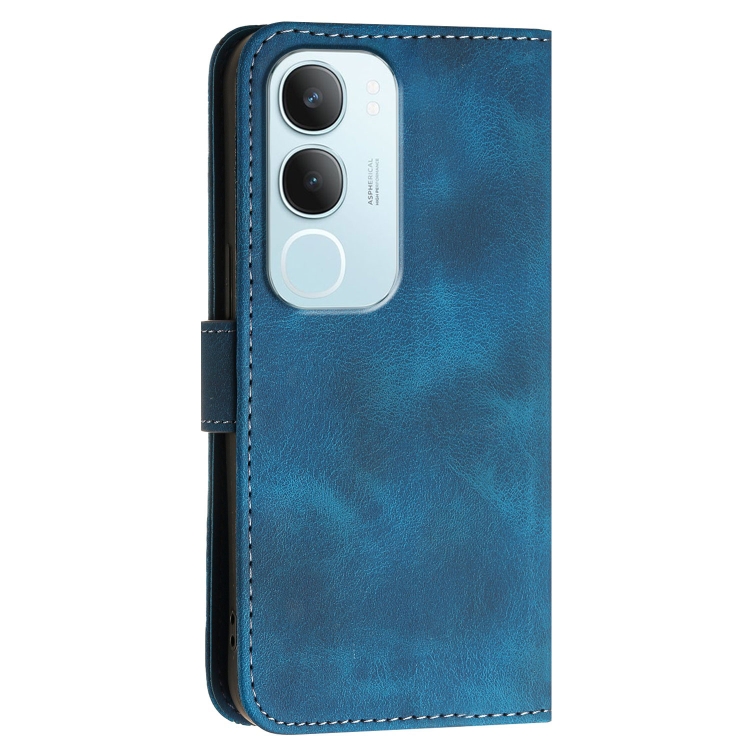 Funda de Cuero con Diseño de Mariposa En Relieve y Cuadrícula Global para Vivo Y19S con Cordón (Azul Oscuro)
