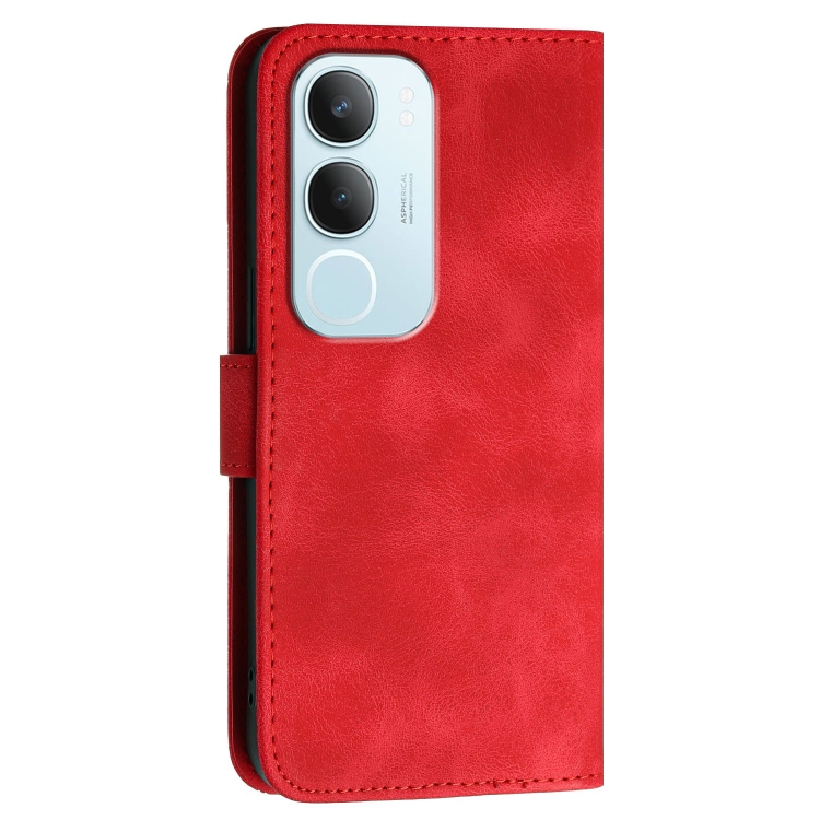 Funda de Cuero con Diseño de Mariposa En Relieve y Cuadrícula Global para Vivo Y19S con Cordón (Rojo)