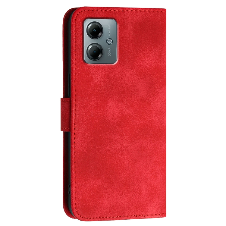 Funda de Cuero Motorola Moto G Play 2025 y G Power 2025 con Diseño Mariposa y Cordón (Rojo)
