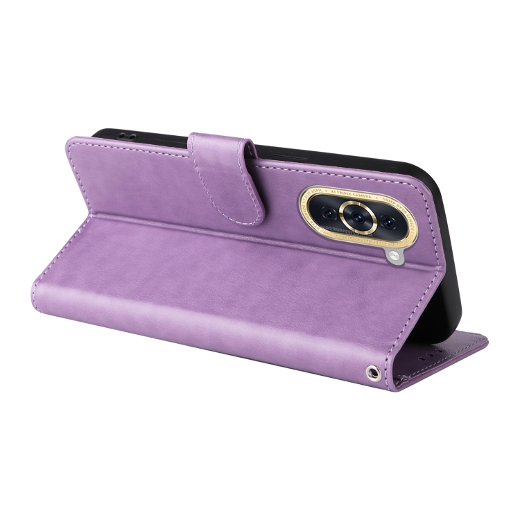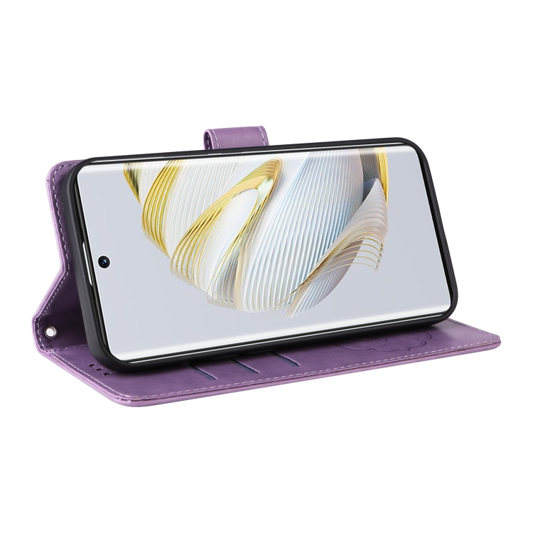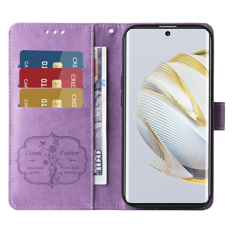 Funda de Cuero para Huawei Nova 10 con Diseño de Mariposas y Flores en Relieve (Morado)